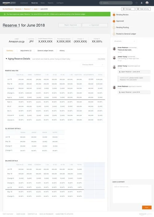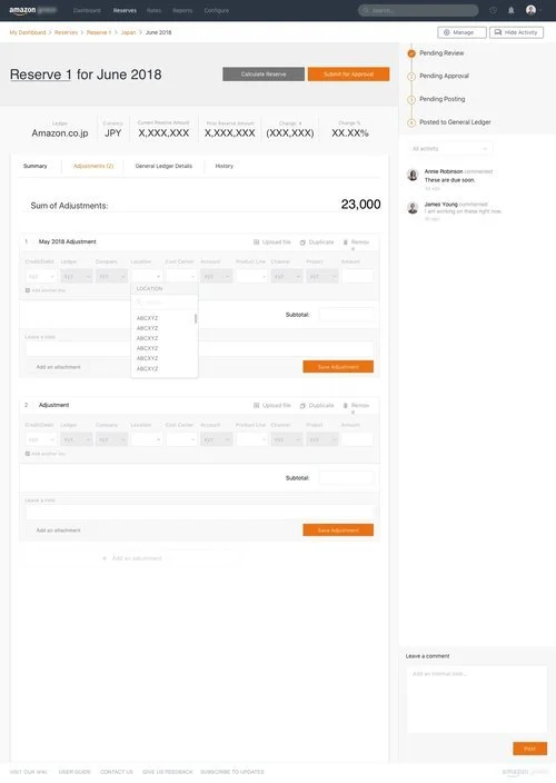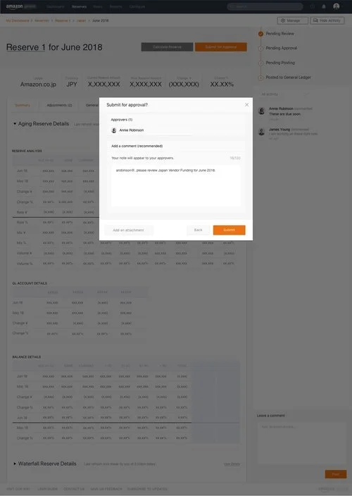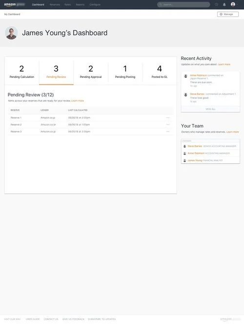 In my research, I also came across 2 major user roles that would be using the finance tool the most: Approvers and Preparers. Preparers are Financial Analysts who are actively analyzing and calculating reserves, and need approval from Approvers before successfully posting a reserve to the general ledger.