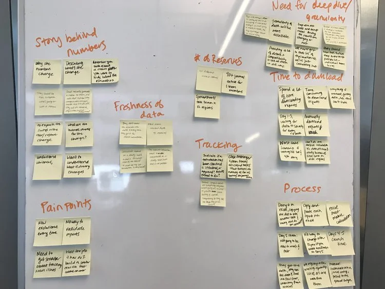 Also based on the interviews, I created a customer journey map in order to understand the current experience accountants go through today in calculating reserves and rates using manual Excel sheets.