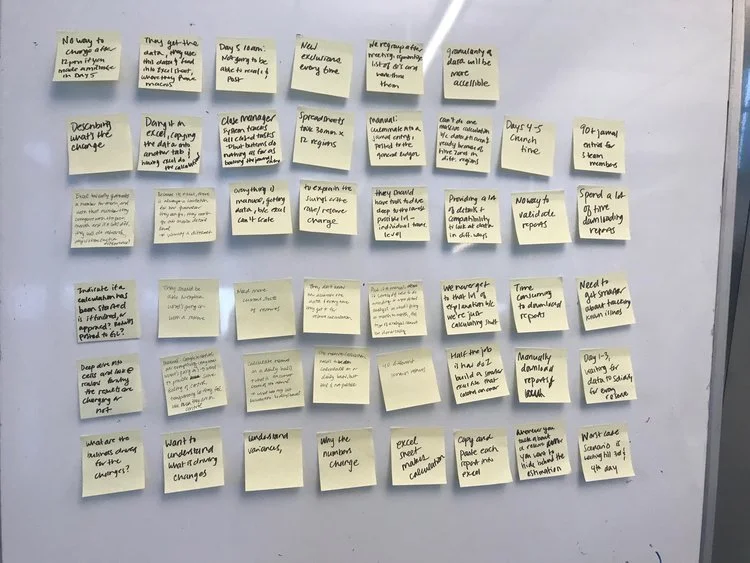 Conducted a total of 11 interviews with both customers (accountants and finance managers) and stakeholders (developers). Created an affinity diagram to analyze results and draw out key research points.